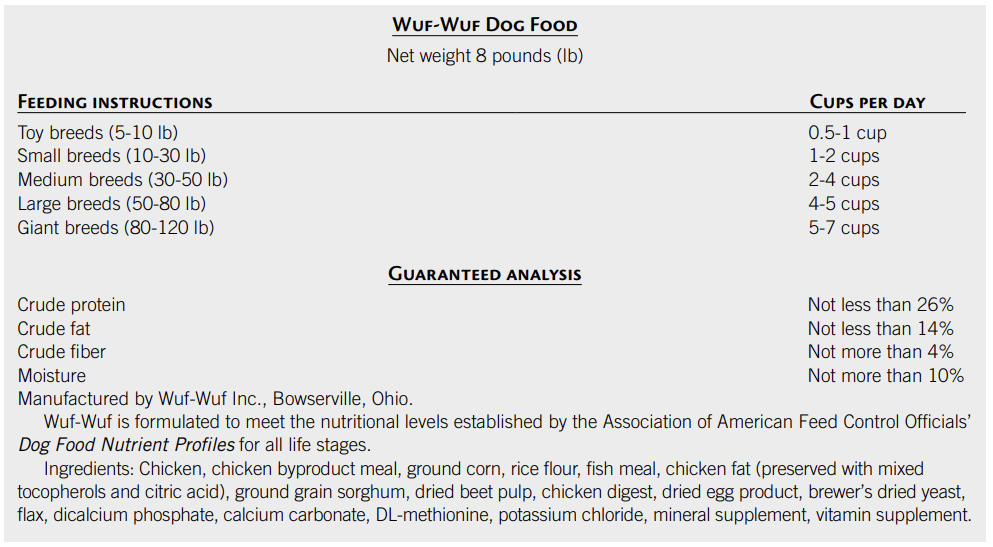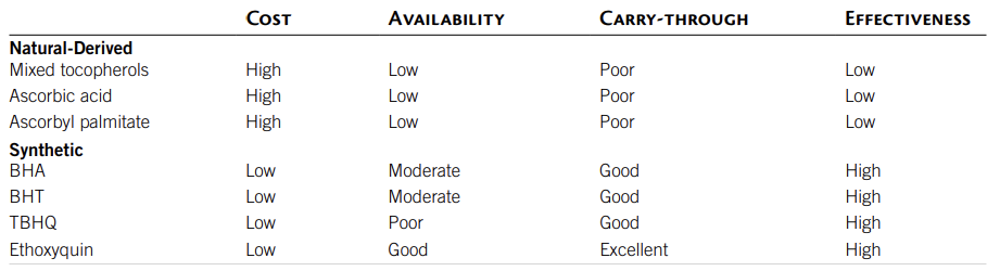 팽창된 제품에는 제품의 적절한 가공이 가능하도록 일정 수준의 전분이 포함되어야 한다. 마찬가지로, 구운 비스킷에는 밀의 전분과 글루텐이 비스킷의 매력적인 질감과 풍미에 기여하기 때문에 밀을 성분으로 포함하는 경우가 많다. 압출 및 구운 건조식품의 조리 과정은 제품의 복합 탄수화물의 소화율을 향상하고 식품의 기호성을 향상한다. 열처리 및 저장은 일부 비타민의 약간의 손실을 초래할 수 있으므로 이러한 영양소의 보상량은 식이가 공식화될 때 제조업체에 의해 포함된다. 압출 공정에서 사용되는 열은 제품을 살균하기도 하며, 건조식품에 존재하는 적은 양의 수분은 박테리아나 곰팡이의 번식을 방지하는 데 도움이 된다.